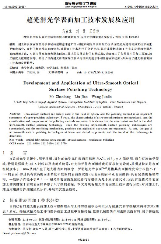 超光滑光学表面加工技术发展及应用